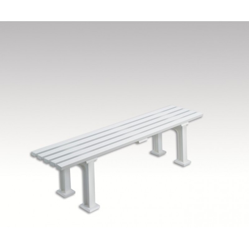 2 Vollkunststoff-Füße sowie 5 Vollkunststoff-Latten ohne Lehne, daher beidseitig verwendbar, hoher Sitzkomfort. G. 12kg.